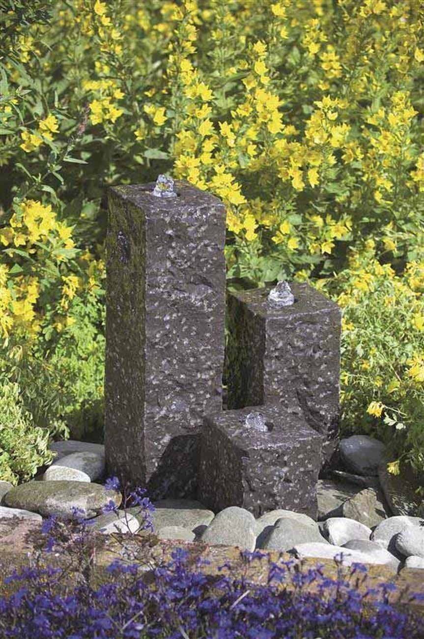 3 Granitsäulen als Wasserspiel mit LED Beleuchtung