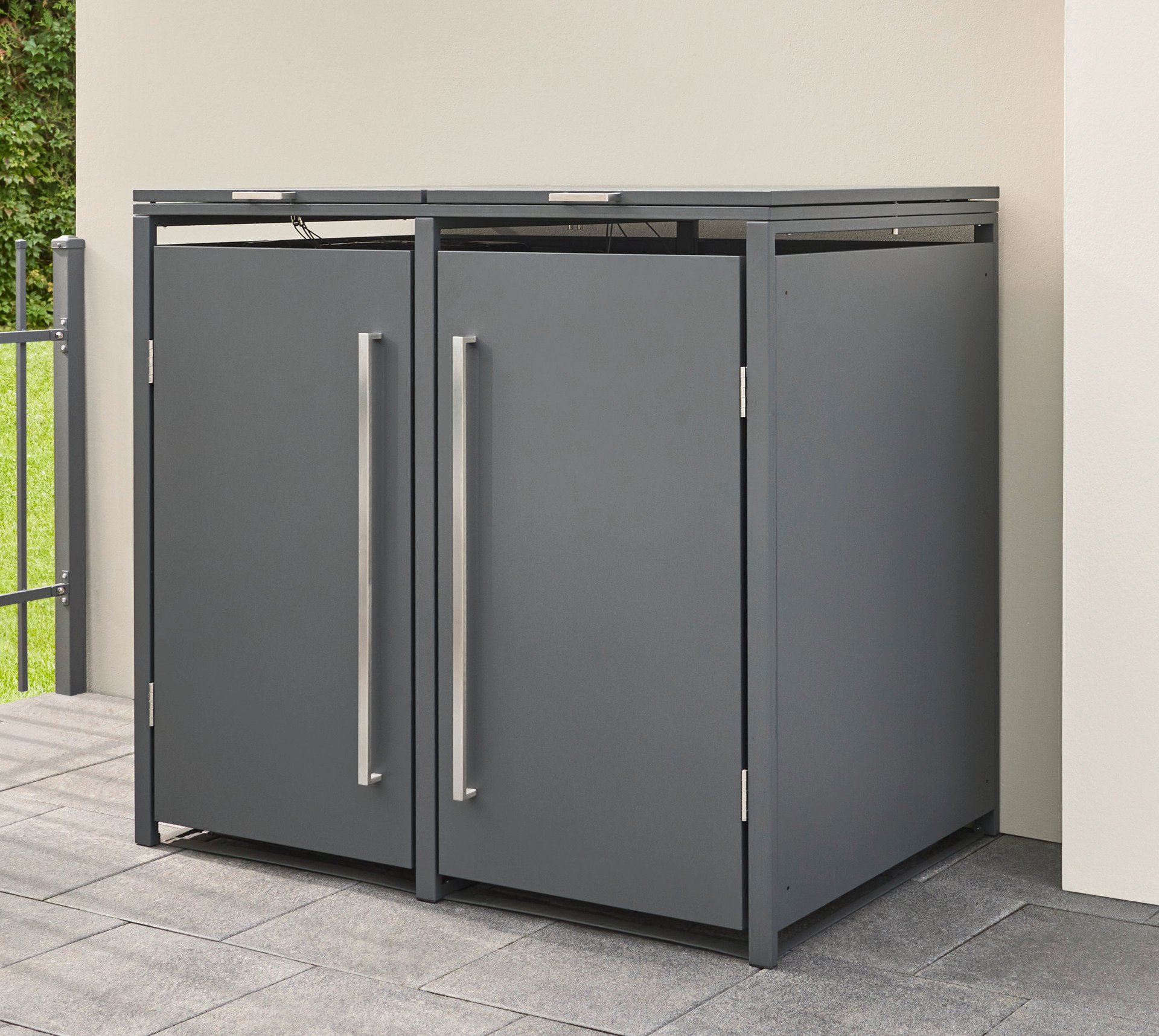 – Breite: 132, – Farbe: anthrazit, – Höhe: 116, – Länge: 80, – Material: Kunststoff, – Produktart: Mülltonnenverkleidung