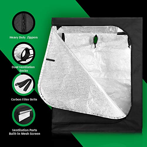 Vigevee Grow Tent Growzelt 120x60x180cm, Lichtdicht und Wasserdicht Growschrank mit Beobachtungsfenster, Luftig Gewächshaus Growroom für Homegrowing,...
