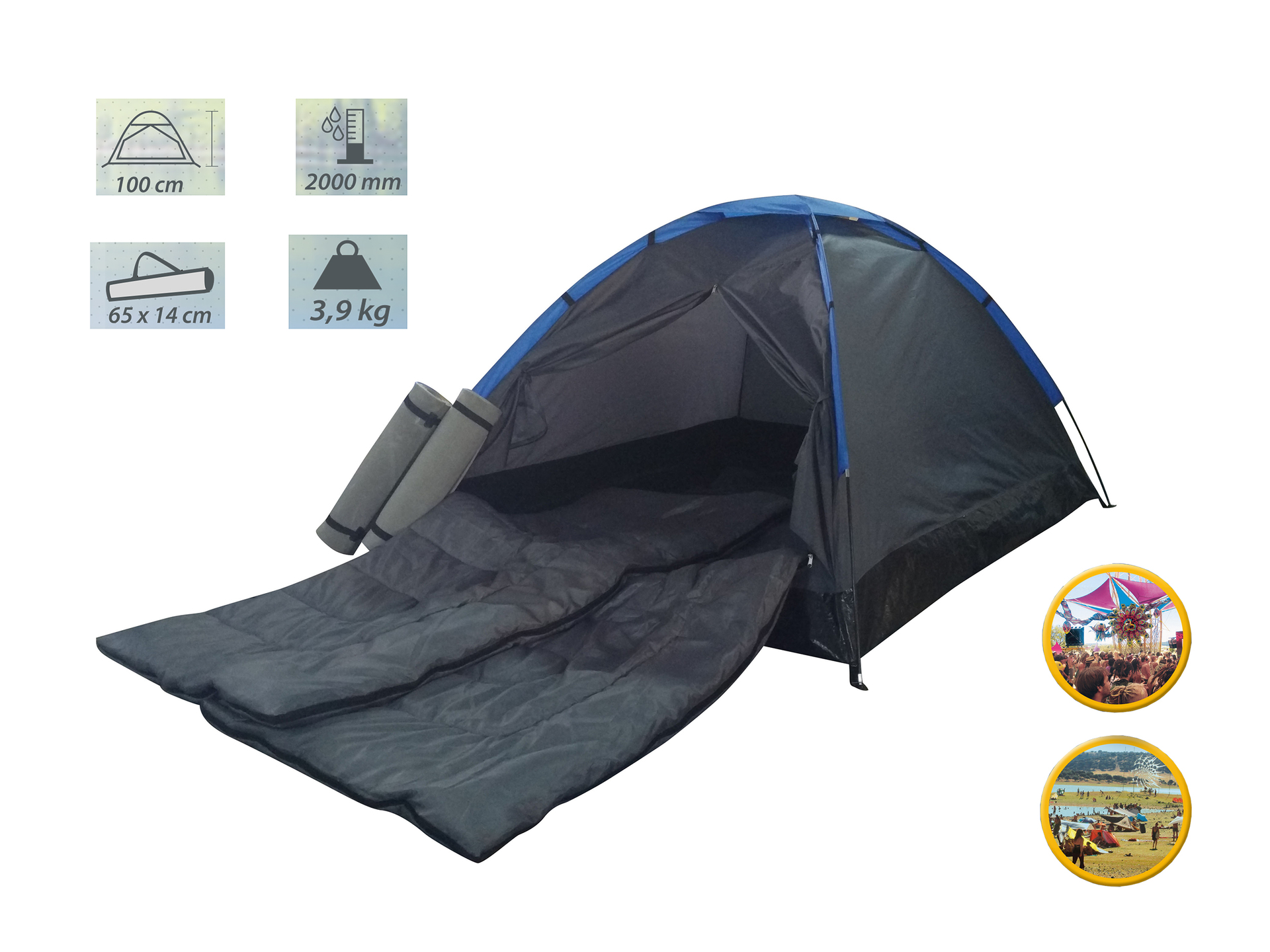 Zelt FESTIVAL, 205x150x105cm, inkl. Isomatten und Schlafsäcken