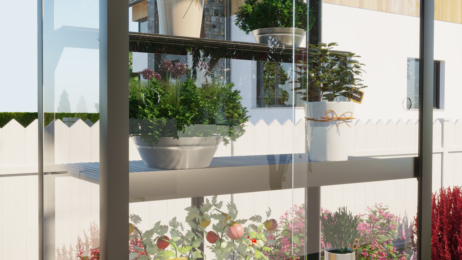 Mit diesem zusätzlichem Regal schaffen Sie eine weitere Ebene in Ihrem Balkongewächshaus und vergrößern so die Nutzfläche. Das Regal ist genau so beschaffen, wie das erste: mit robusten und leicht zu pflegenden Streben über die volle Tiefe, optisch auf die Hausfarbe abgestimmt.