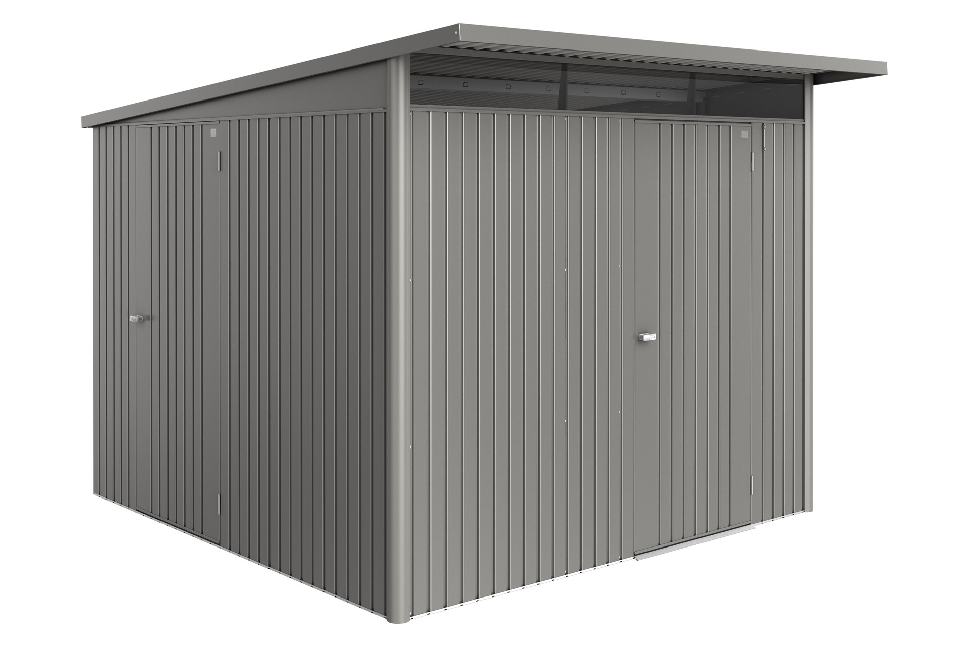 Damit Ihr Gerätehaus von zwei Seiten begehbar wird, können Sie eine Zusatztüre in einer Seitenwand einbauen. Im Lieferumfang der Zusatztür sind eine 3-fach Verriegelung, Edelstahl-Drückergarnitur, Gasdruckfeder, zwei Werkzeughalter sowie die passenden seitlichen Türanschlagbleche enthalten. Der Türanschlag ist nur rechts möglich.